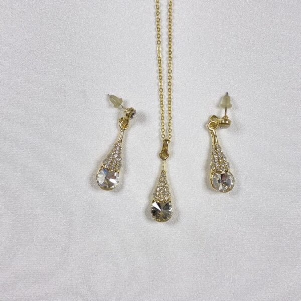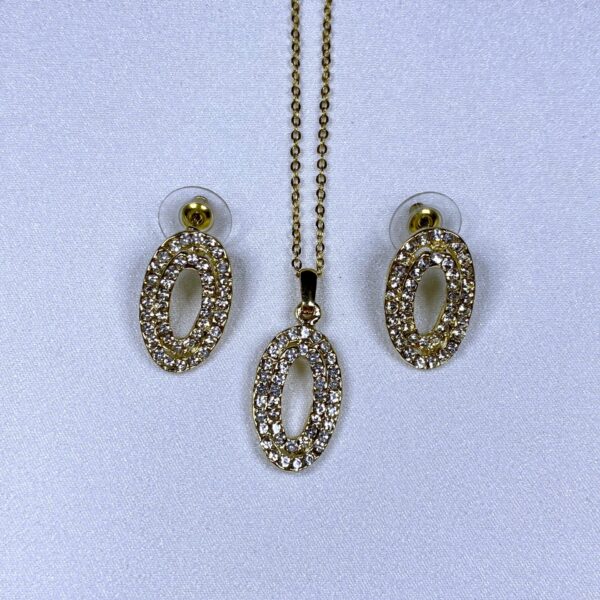 Parlak Taşlı Oval Kolye ve Küpe Seti