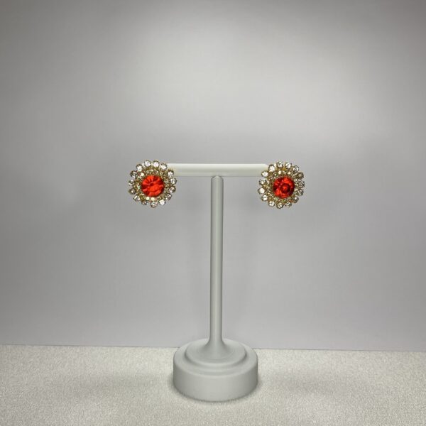 Kırmızı Taşlı Çiçek Desenli Küpe