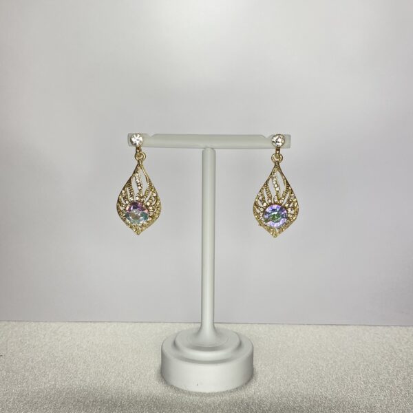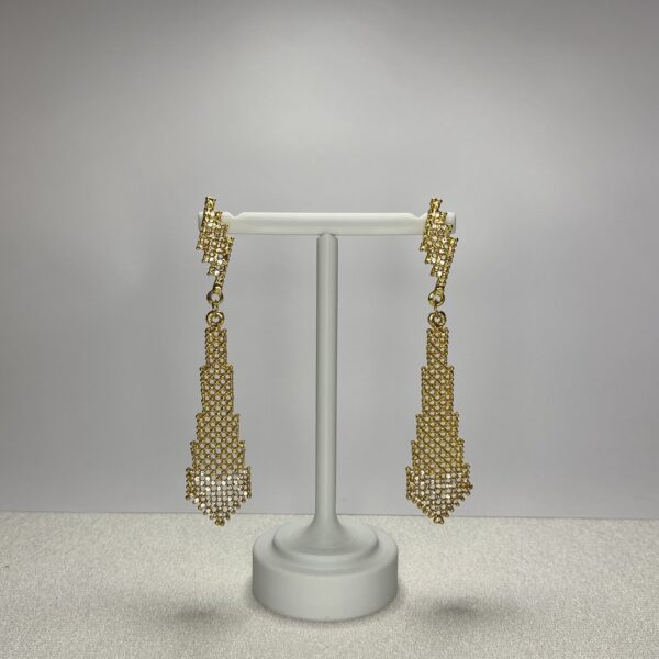 Parlak Taşlı Altın Renkli Sallantılı Küpe