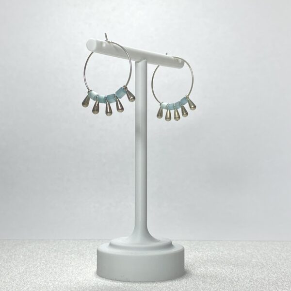 Bu şık ve modern halka küpe, yazın sıcak günlerinde ve rahat stil tercihlerinde mükemmel bir tamamlayıcıdır. Ürün, açık mavi tonlarında boncuklarla süslenmiş ve zarif metal damla detaylarıyla zenginleştirilmiştir. Küpenin hafif yapısı, gün boyu rahat bir kullanım sağlar. Hem günlük hem de özel günlerde tercih edebileceğiniz bu parça, stilinizi tamamlamak için idealdir. Deniz temalı tasarımıyla özellikle plaj etkinliklerinde, yaz partilerinde veya tatil gezilerinde dikkat çekici bir seçim olacaktır.