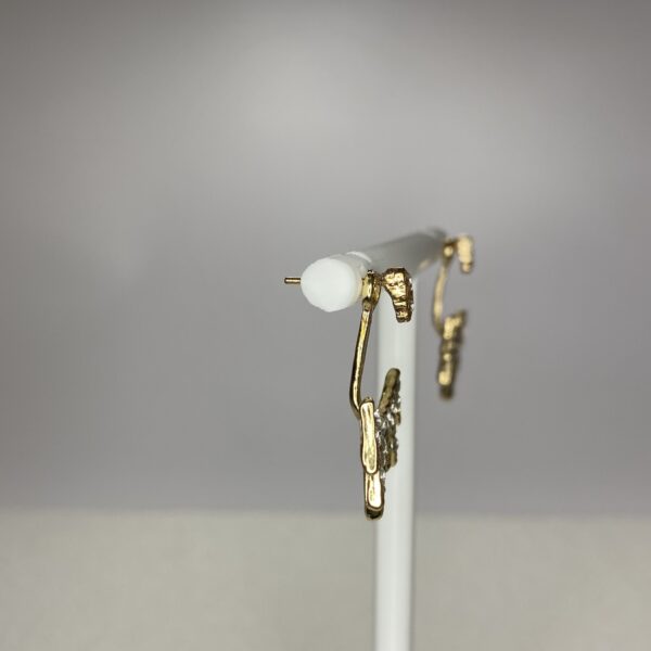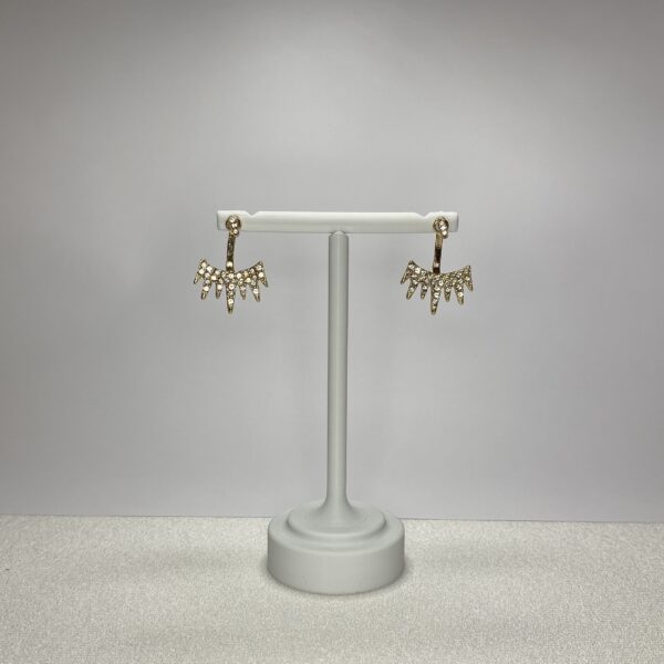 Asil ve zarif bir dokunuş katan bu taç formundaki küpe, altın rengi metal üzerine özenle yerleştirilmiş parlak taşlarıyla göz alıcı bir görünüm sunuyor. Parlak taşlarla süslenmiş ve özgün bir şekle sahip olan bu küpe, her türlü kıyafetle kolaylıkla kombinlenebilir. Hem günlük hem de özel günlerde kullanıma uygundur. Hafif yapısı sayesinde uzun süre rahatça takılabilir. Moda tutkunlarının vazgeçilmezi olacak bu ürün, stilinize zarif bir dokunuş katacak.