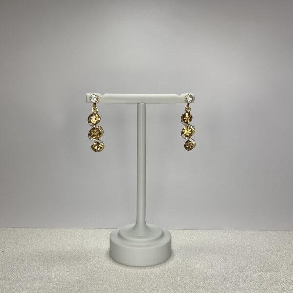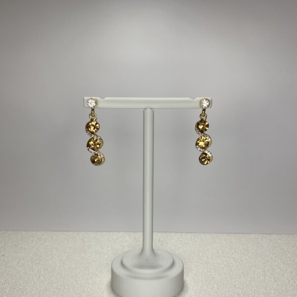 Bu zarif sarı üç damlalı küpe, göz alıcı altın tonlarında ve ışıltılı taşlarla süslenmiştir. Hafif yapısı sayesinde gün boyu rahatlıkla kullanılabilir. Dikkat çekici tasarımı ile her türlü özel davette veya günlük kullanımda şıklığınızı tamamlar. Özellikle yaz aylarında güneşin altında parlayarak sizi öne çıkarır. Moda tutkunları için ideal bir aksesuar olan bu küpe, teenleriniz ve şıklığınızla bütünleşmenizi sağlar.